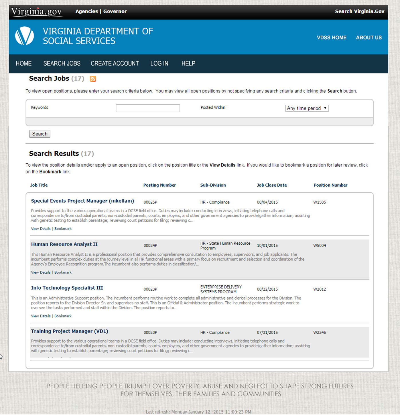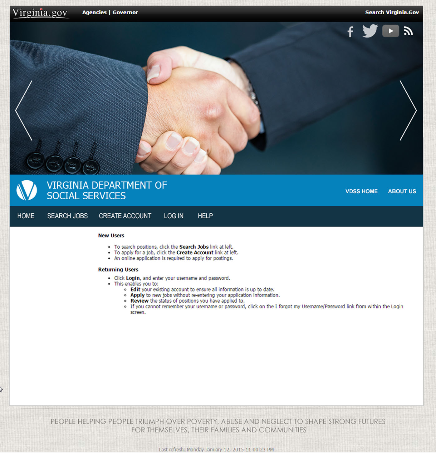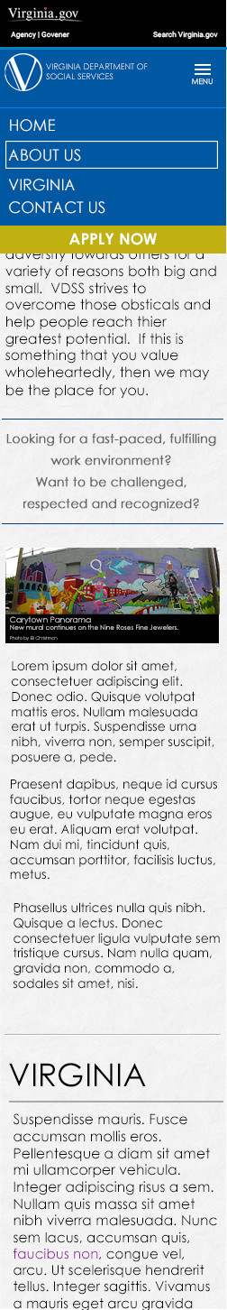 The VDSS Career Campaign was created to compliment the agency's adoption of their own employment application system. Prior to this initiative, the agency relied on the state application system. As the agency grew, the need to separate their postings from the rest of the state increased. The campaign consists of two primary facets, a gateway to the PeopleAdmin Application and the system itself. My role is to design and develop the gateway site and to skin the application to match the gateway.